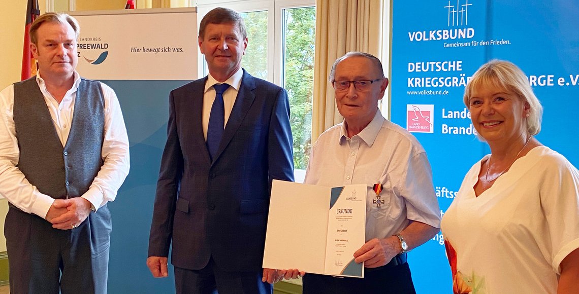 „Der Volksbund in Brandenburg und der Landkreis Oberspreewald-Lausitz danken Bernd Leubner für sein Wirken und wünschen ihm, zusammen mit seiner Frau, noch viele Jahre in Gesundheit und Zufriedenheit – mit Gottes Segen“, sagte Oliver Breithaupt.