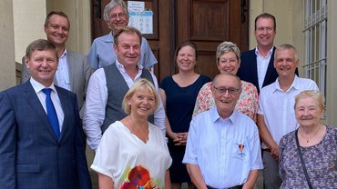 Bernd Leubner (80) wurde in einer kleinen Feierstunde von der Vorsitzenden des Volksbundes in Brandenburg, Landtagspräsidentin Prof. Dr. Ulrike Liedtke, sowie von Landrat Siegurd Heinze geehrt. Dem scheidenden Kreisvorsitzenden wurde mit der Verleihung des Goldenen Ehrenkreuzes des Präsidenten des Volksbundes für seine langjährige engagierte Arbeit gedankt.