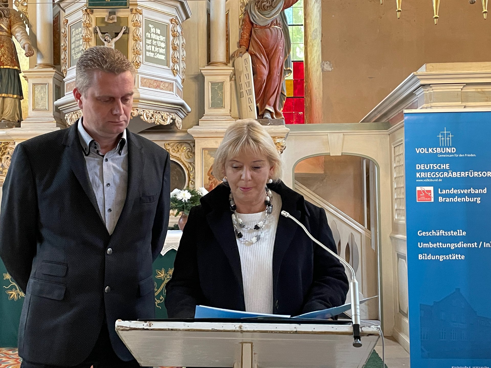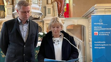 Stellvertretend für Ministerpräsident Dietmar Woidke, dem Schirmherren des Volksbundes in Brandenburg, ging Staatssekretär Dr. Markus Grünewald in seinem Grußwort auf den Ukrainekrieg ein. Darin äußerte er sein Bedauern über die Eskalation des Konfliktes durch Russland und warb für fortgesetzte Unterstützung für die Ukraine.