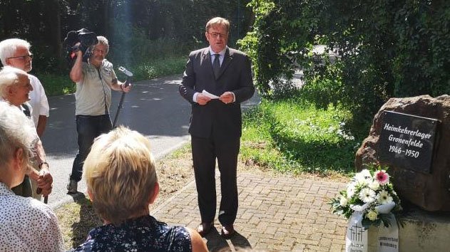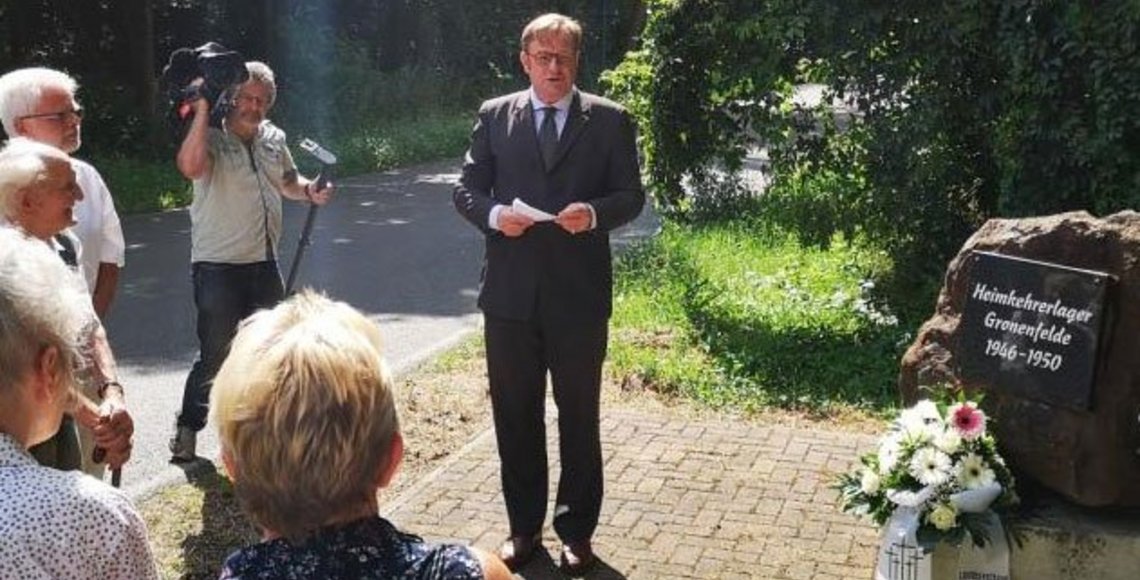 Volksbundgeschäftsführer Oliver Breithaupt schlug in seiner Gedenkrede den Bogen vom Angriff auf die Sowjetunion am 22. Juni 1941 bis hin zu den Ereignissen und Schicksalen im Heimkehrerlager Gronenfelde. Die Ereignisse in dieser vergleichsweisen kurzen Zeitspanne dürfen nicht vergessen werden und sollten auch spätere Generationen zum Nachdenken, Verstehen und Handeln anregen. Letztendliches Ziel müssen Frieden, Versöhnung und Vergebung sein.