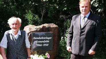 Nach der Präsentation der Computeranimation in der St. Marienkirche kam es am Gedenkstein für die Heimkehrer und dem ehemaligen Lagerort zu einer Kranzniederlegung. Günter Wellkisch, 1945 als 17jähriger Soldat in Kriegsgefangenschaft geraten, kehrte erst nach fünf Jahren in der UdSSR wieder zurück. Seine erste Station in der Heimat war das Heimkehrerlager. Der Zeitzeuge sprach sehr detailreich und emotional über sein Leben.